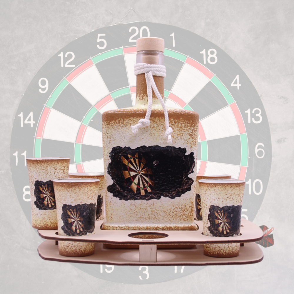 Egyedi kézműves pálinka kínáló szett darts szurkolóknak
