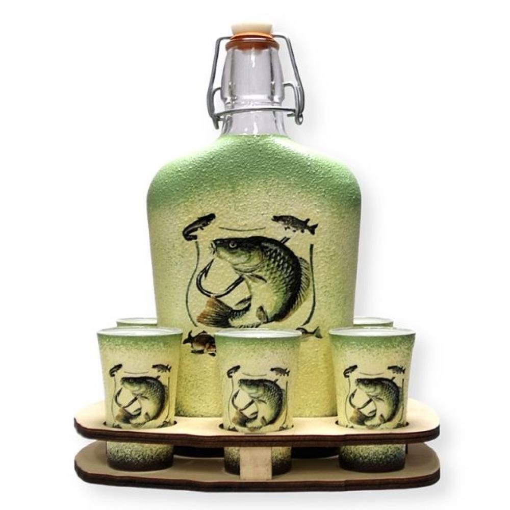 Horgász motívummal díszített pálinka kínáló szett - egyedi kézműves ajándék horgászoknak