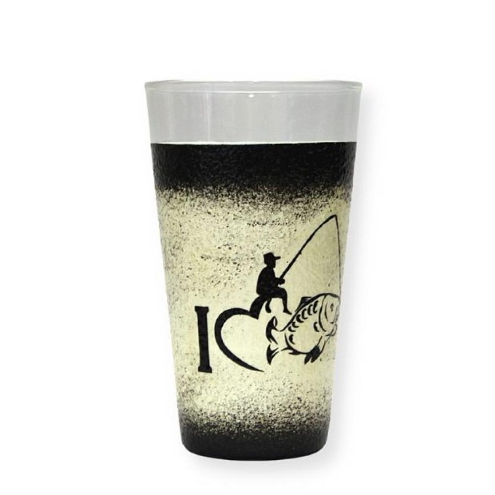 Horgász motívummal díszített vizes pohár - kézműves ajándék