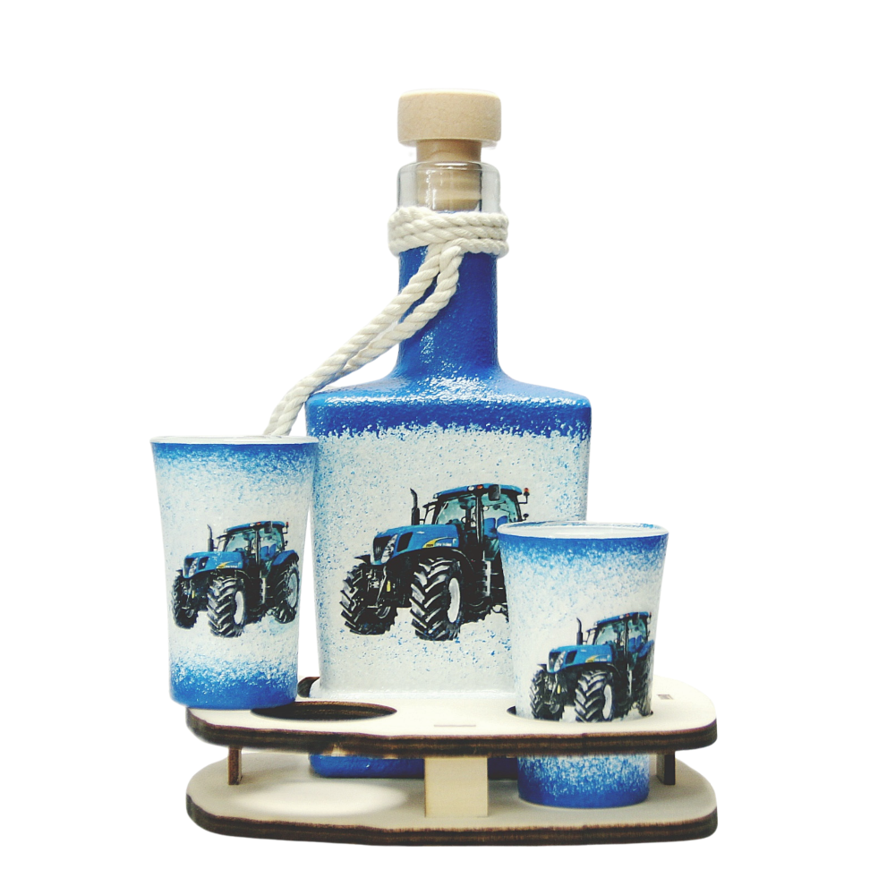 A szett tartalma: 0,2l üveg + 2 x 45 ml pohár + fatartó.