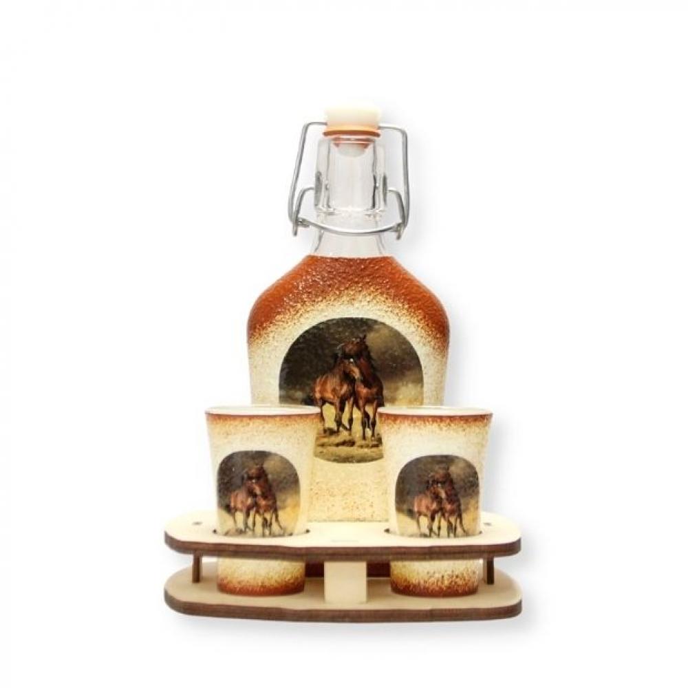 A szett tartalma: 0,2l üveg ( alkoholt nem tartalmazz ) + 2 x 45 ml pohár + fatartó.