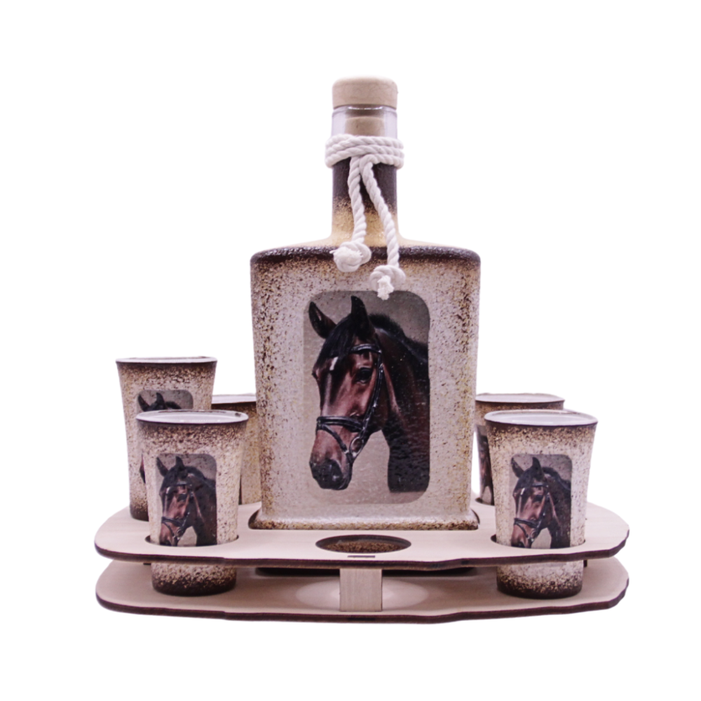 Kuriózum ajándék a lovak szerelmeseinek -pálinka kínáló szett