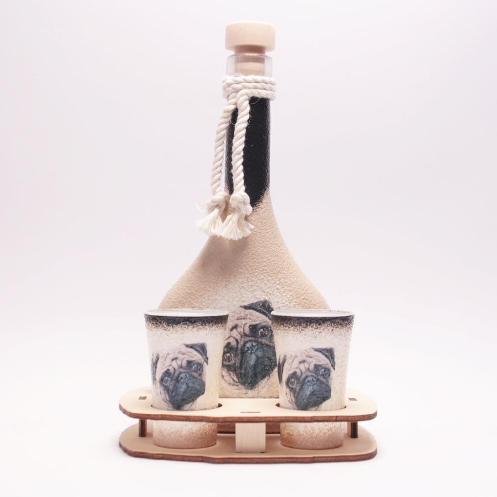 Kutya ( Mopsz ) képpel díszített pálinkás kínáló szett - bármilyen kutyafajta képével kérheted