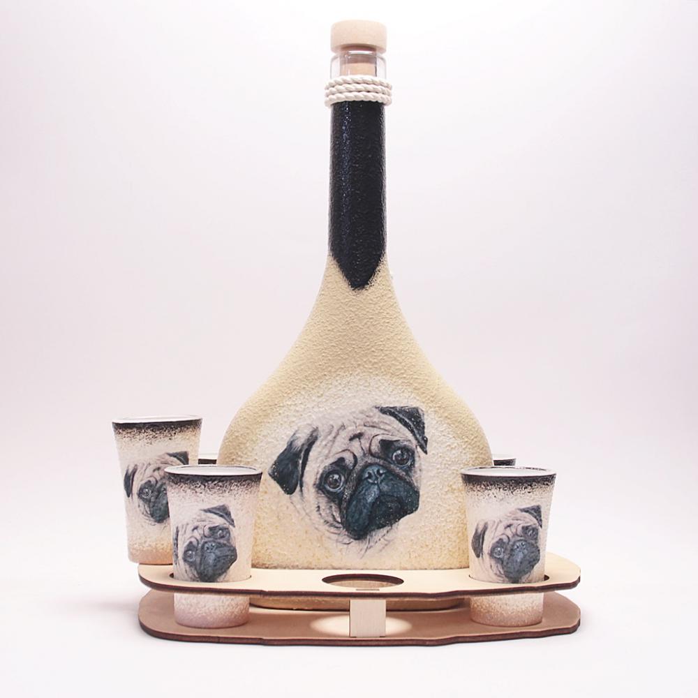 Kutya ( Mopsz ) képpel díszített pálinkás kínáló szett - bármilyen kutyafajta képével kérheted