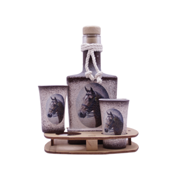A szett tartalma: 0,2l üveg + 2 x 45 ml pohár + fatartó.