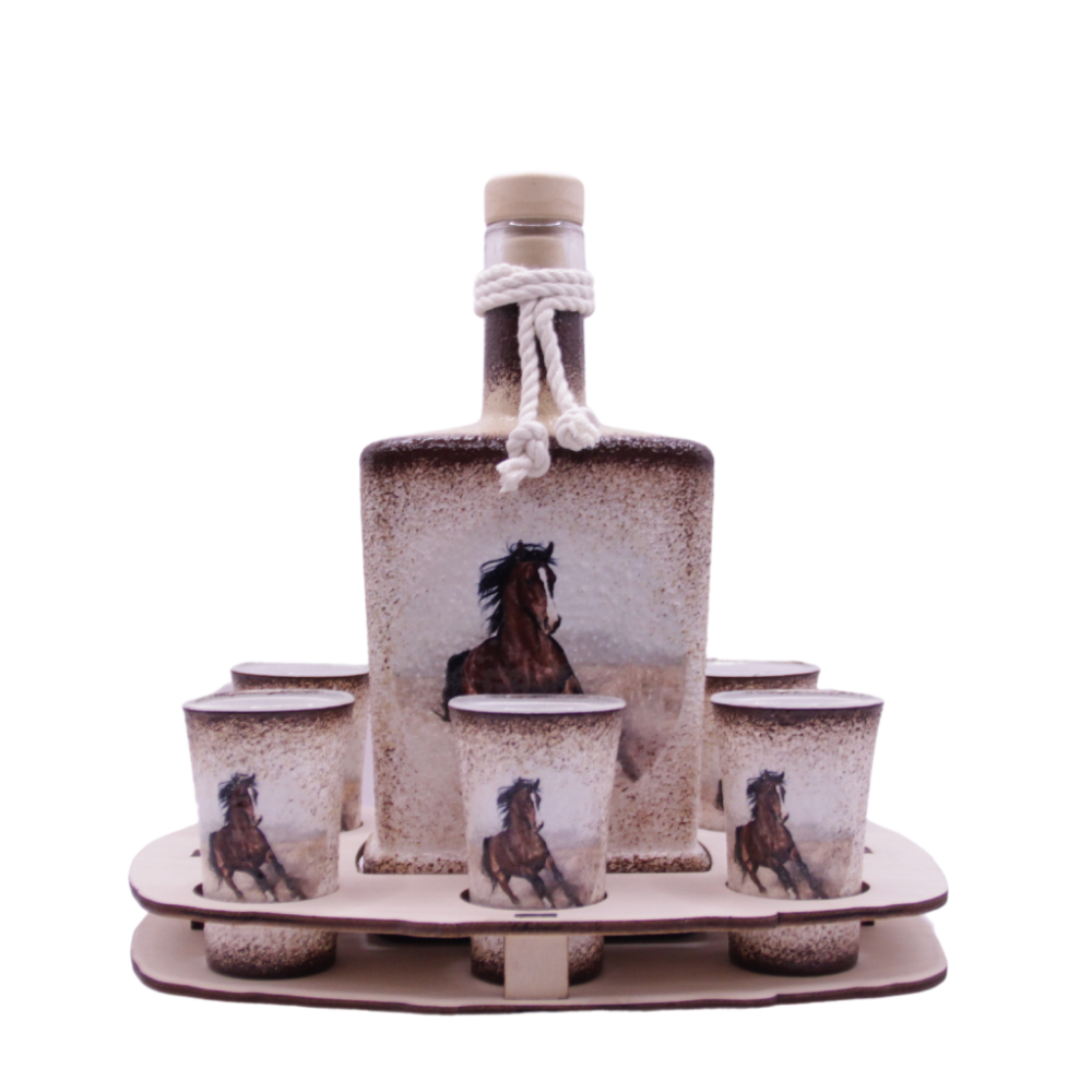 Pálinka kínáló szett ló képpel díszítve - egyénre szabható ( saját ló fotója )