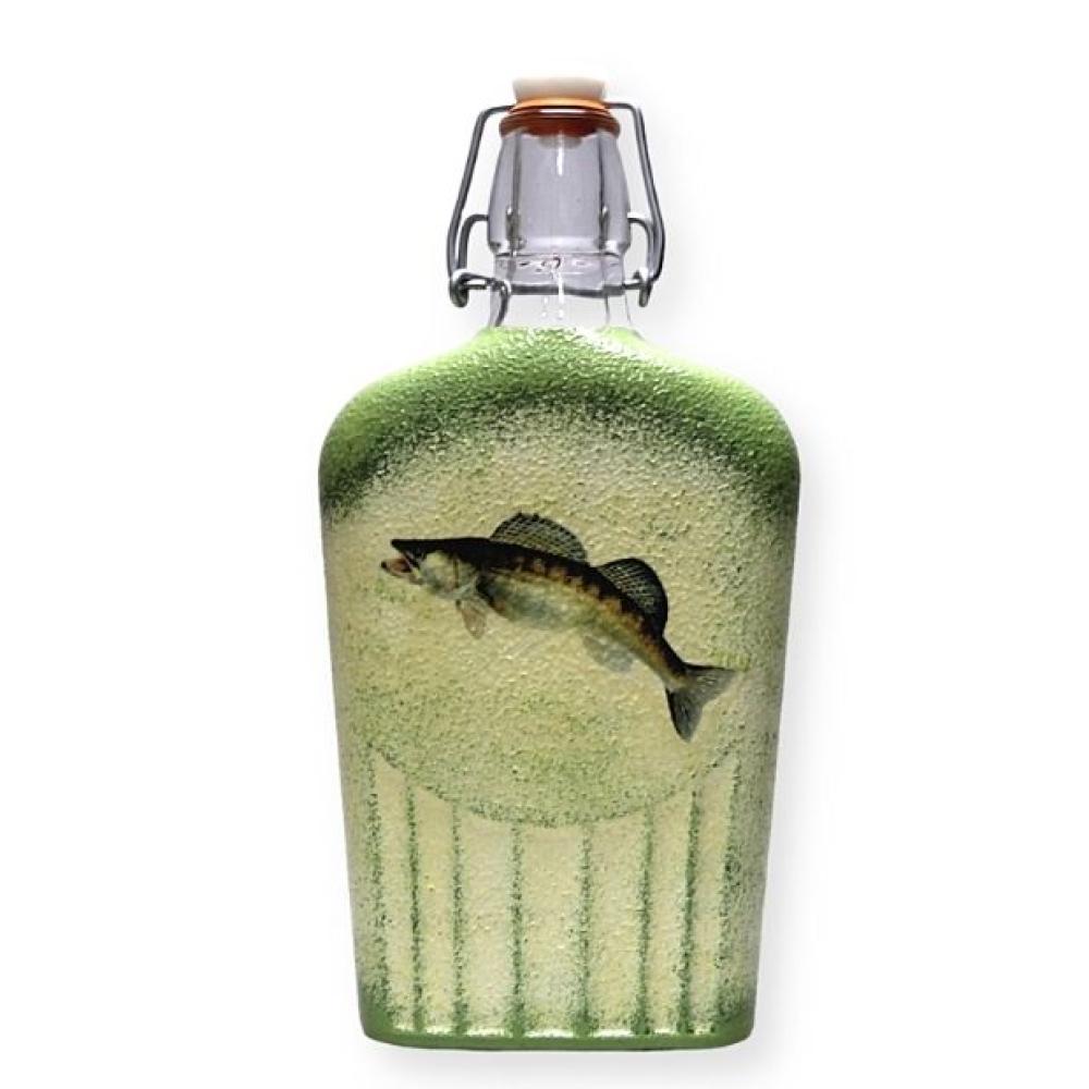 Pálinkás csatos üveg egyedi horgász motívummal ( süllő ) díszítve - egyedi kézműves ajándék
