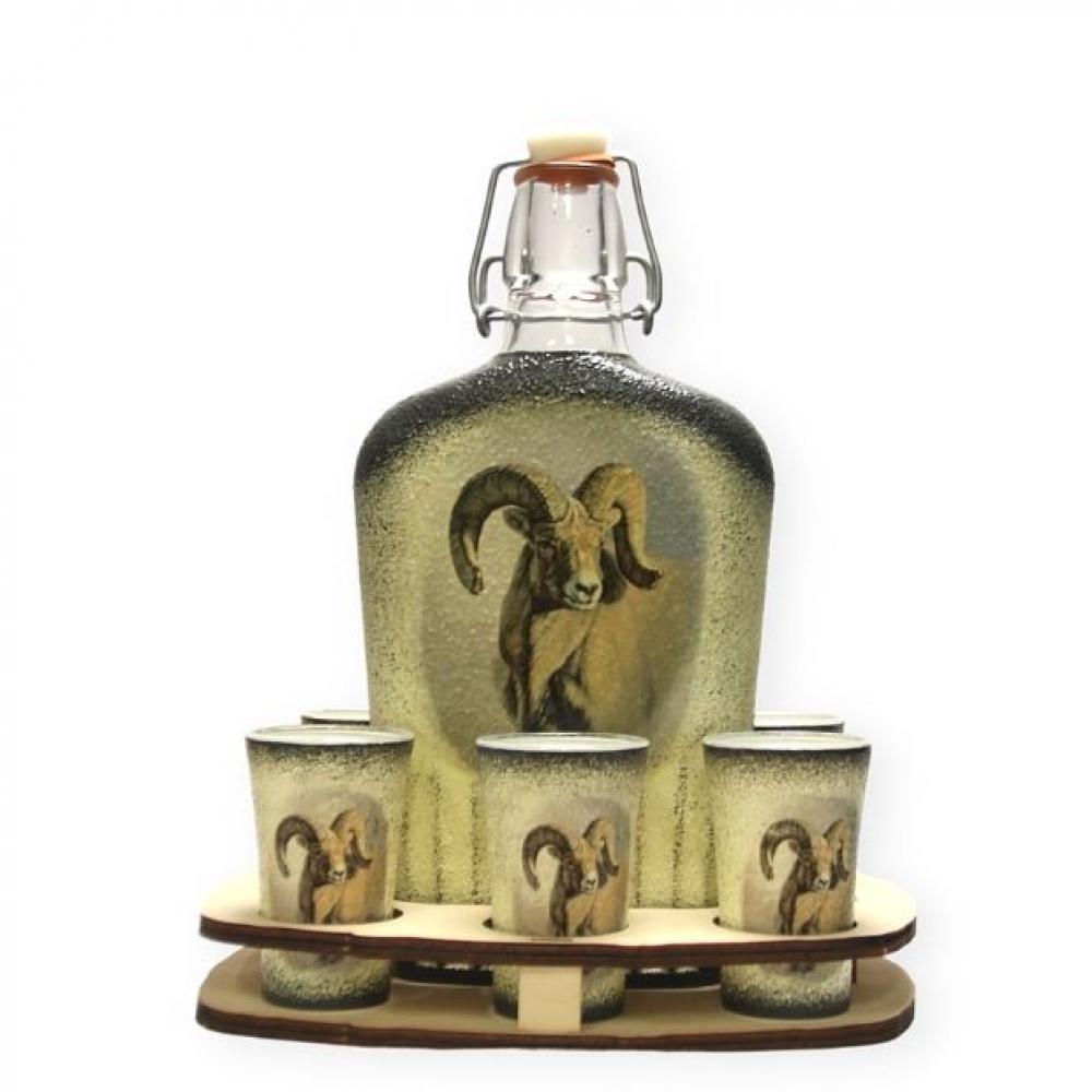 Pálinkás készlet Muflon mintával vadászoknak - saját trófeával