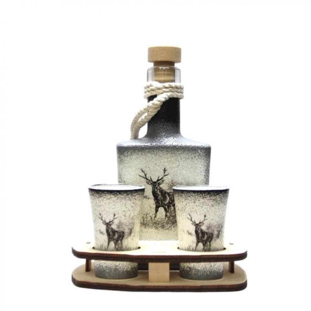 A szett tartalma: 0,2 l üveg ( alkoholt nem tartalmazz ) + 2 x 45 ml pohár + fatartó.