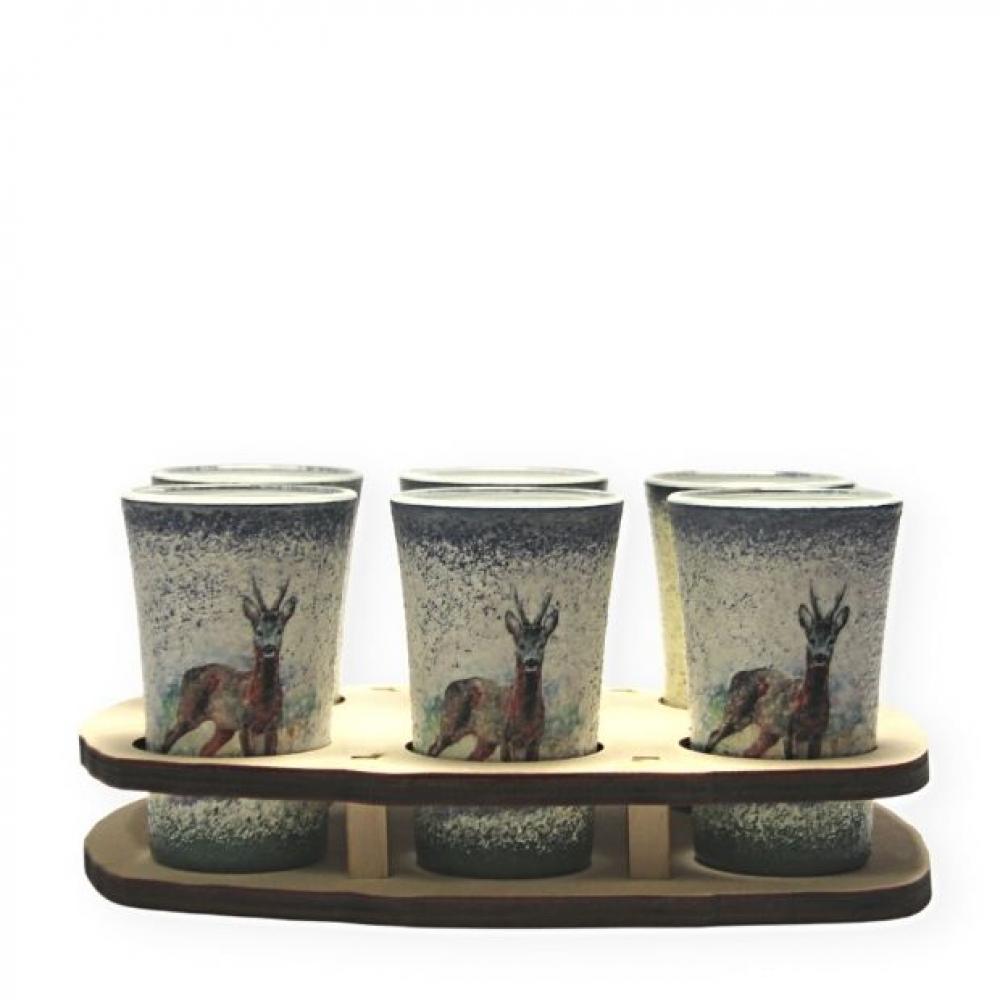 A szett tartalma: 6 x 45 ml pohár + fatartó.