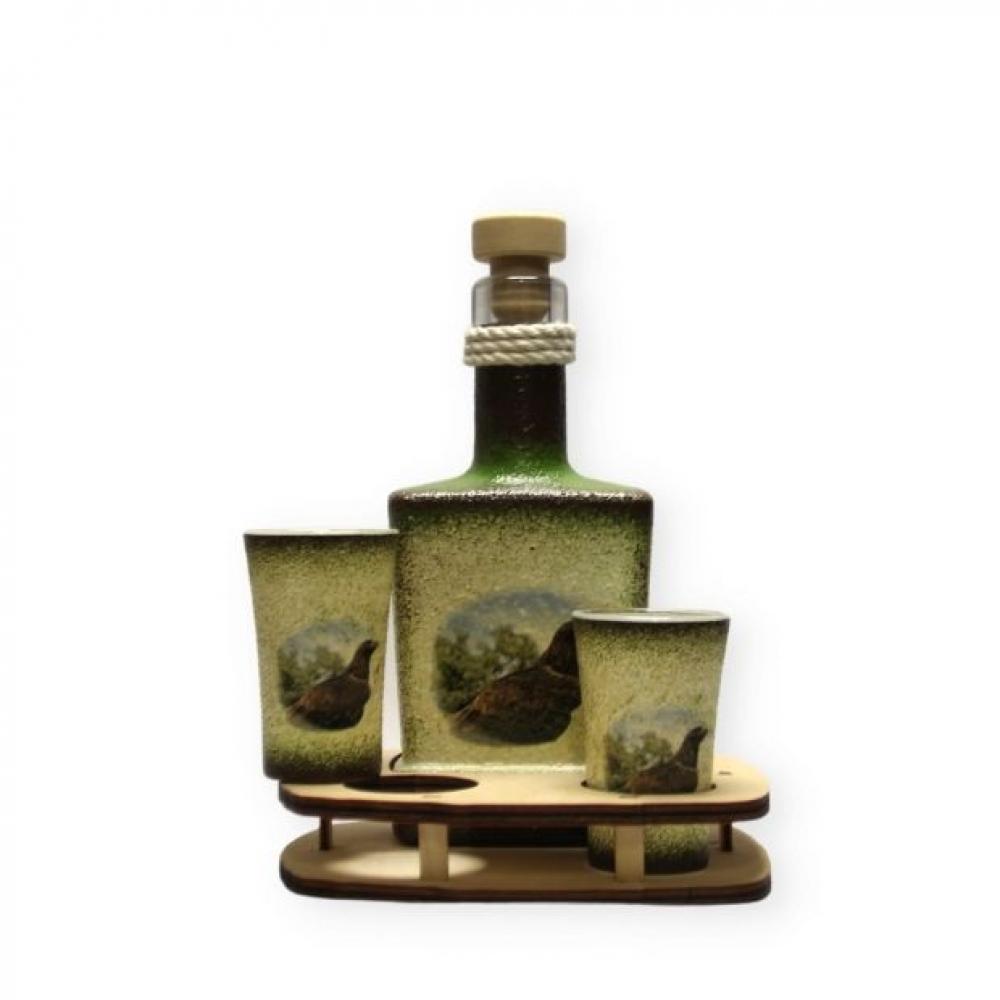 A szett tartalma: 0,2 l üveg( alkoholt nem tartalmazz ) + 2 x 45 ml pohár + fatartó.