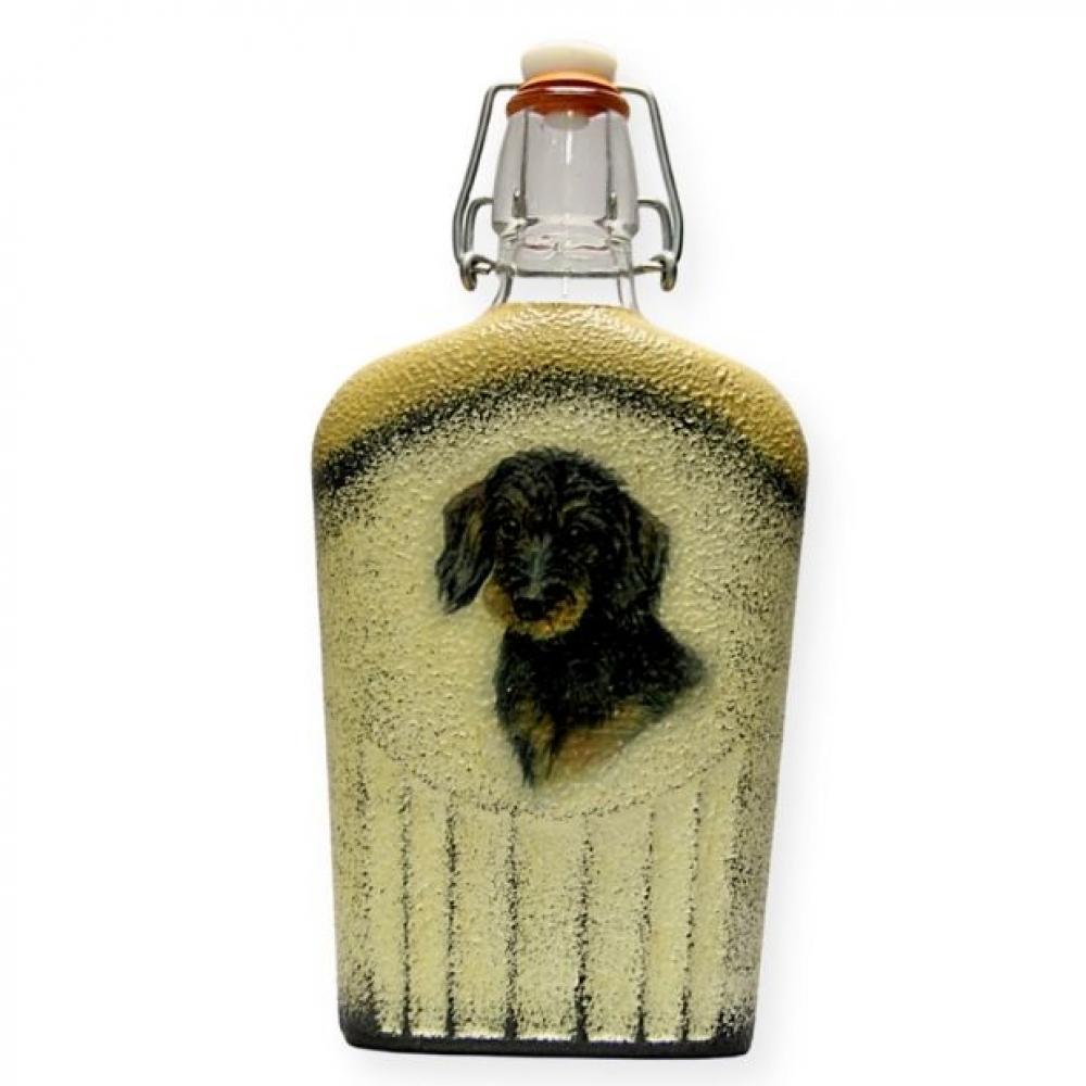 Szálkás szőrű tacskós csatos pálinkás üveg