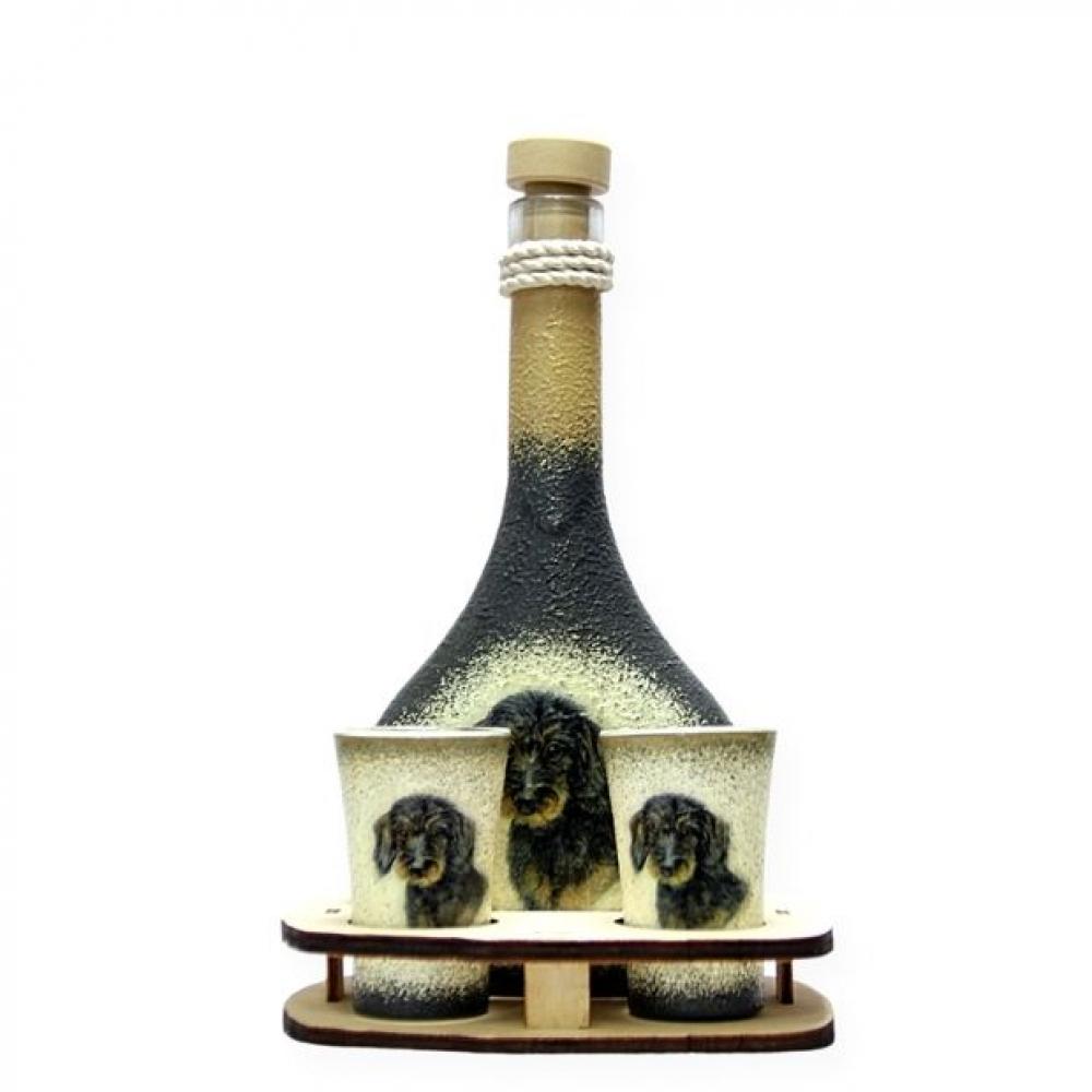 A szett tartalma: 0,2l üveg + 2 x 45 ml pohár + fatartó.