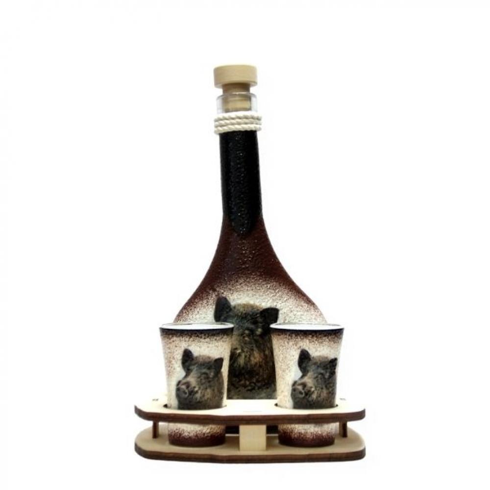 Vadász - vaddisznó motívummal - kis pálinkás készlet