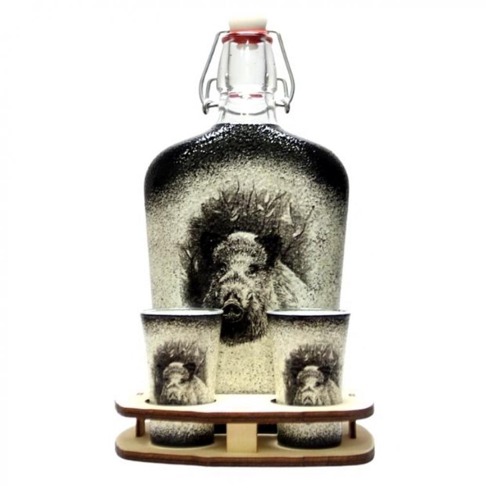 Vadászoknak - vaddisznós pálinkás készlet 2 pohárral
